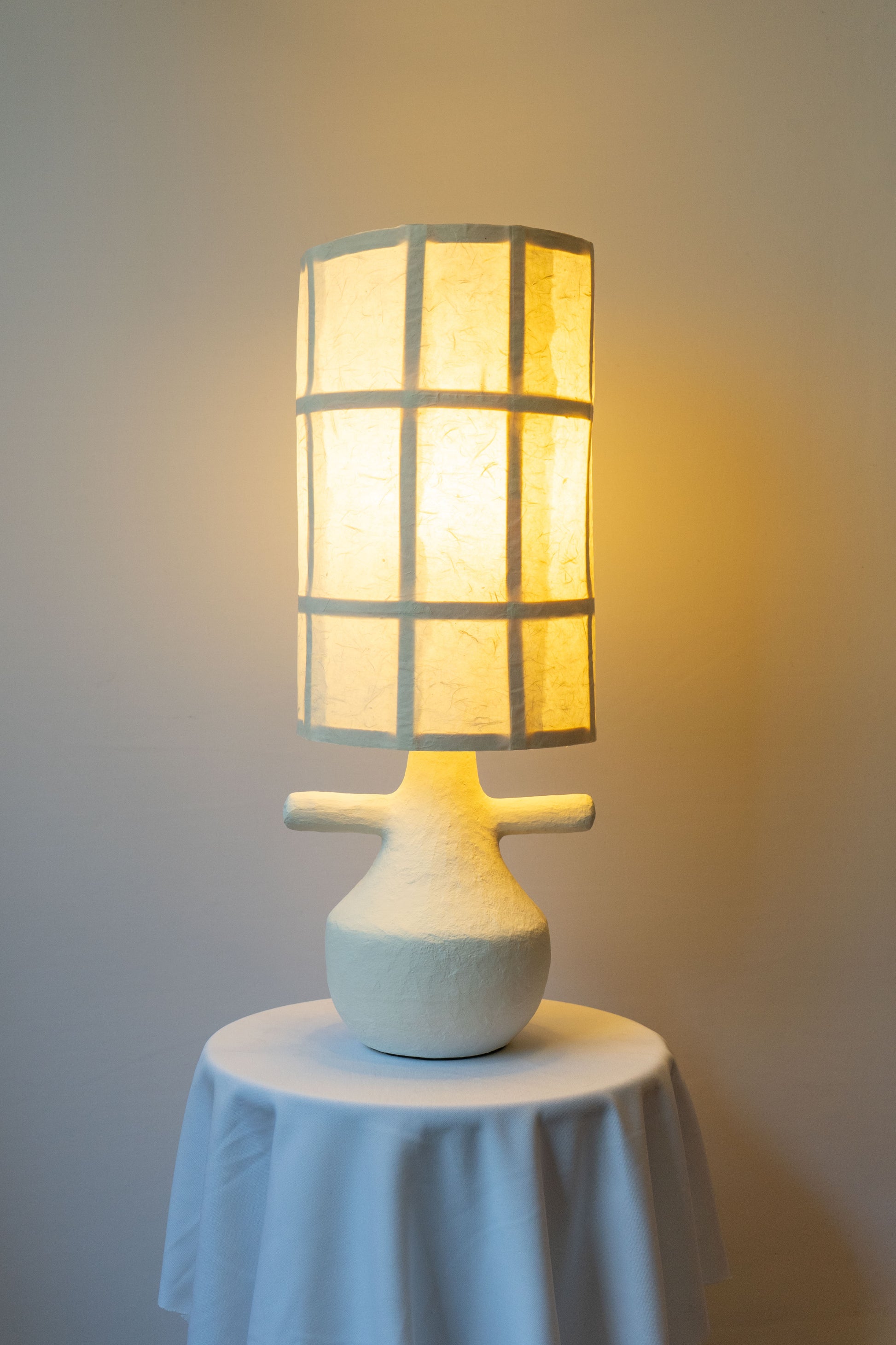 Materials: Eco-friendly paper clay base, mulberry paper and wooden reed shade.