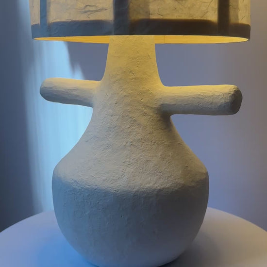 Add a touch of sculptural elegance and serene light to your space with the Cloud Dancer Lamp. Named after the Pantone color of the year, standing at 22 inches tall, this unique piece features a minimalist, organic silhouette with subtle textures that highlight its handcrafted nature.